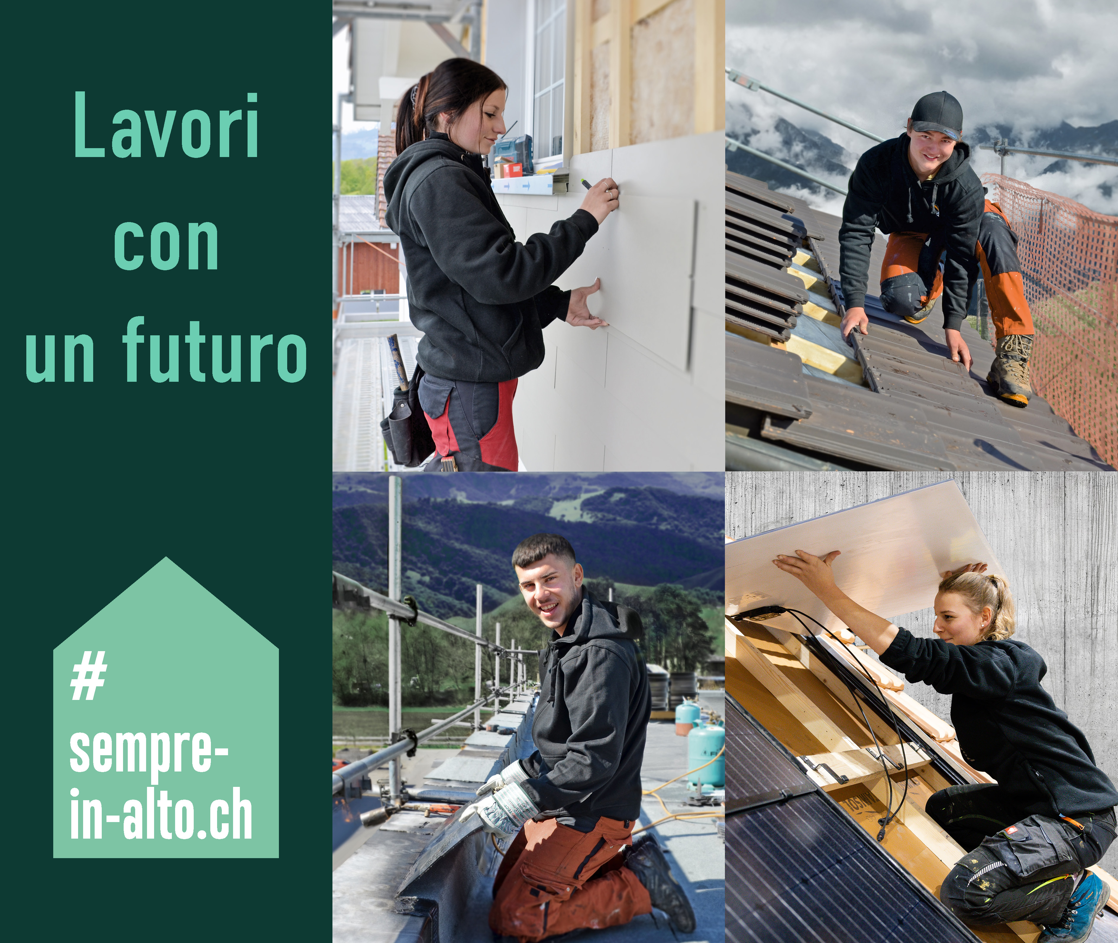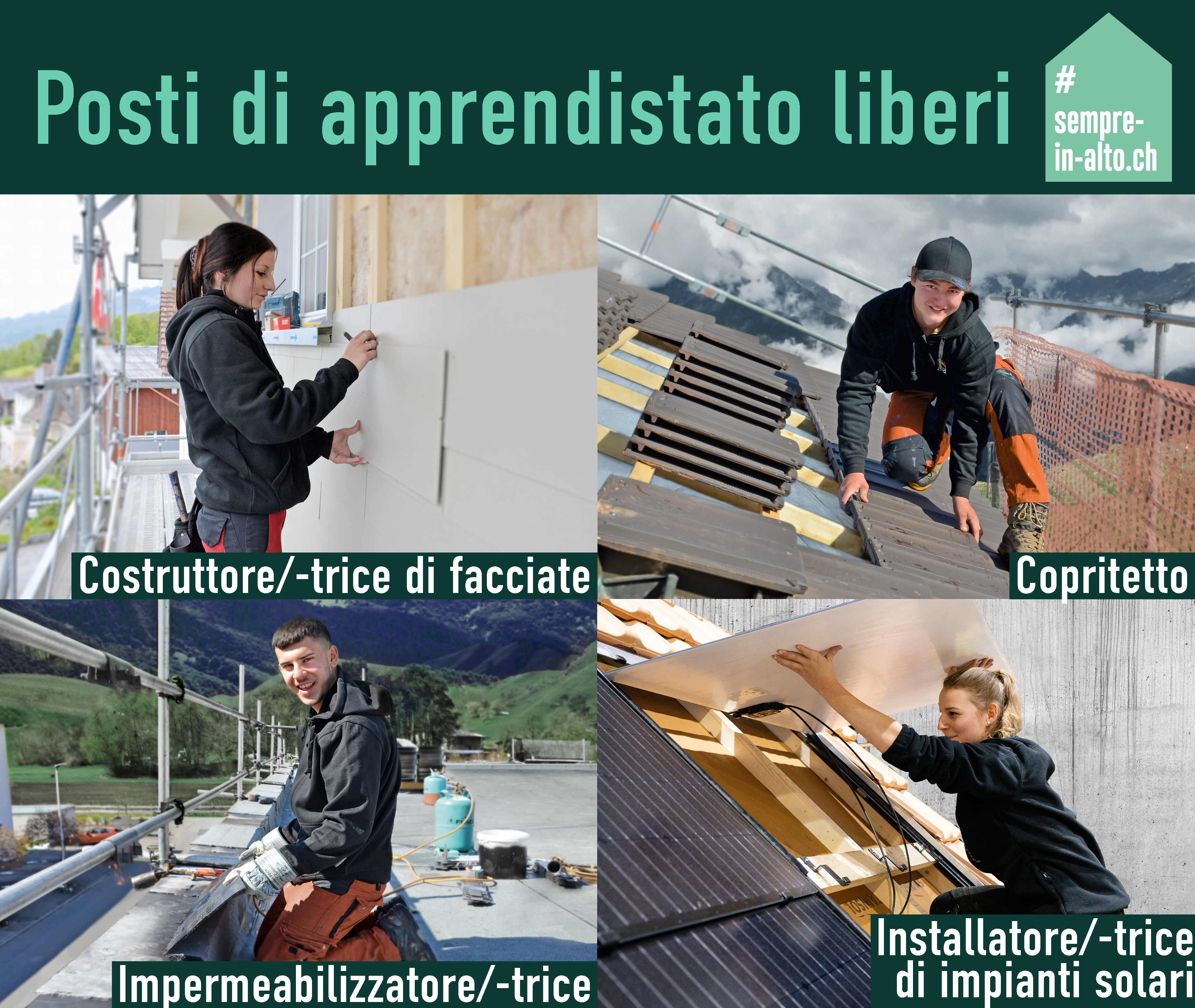 Nel giugno 2025 sono stati realizzati nuovi video e foto sulle professioni di impermeabilizzatore/trice, copritetto/copritettrice, costruttore/trice di facciate e installatore/trice di impianti solari.